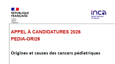 Cet appel à candidatures de l’Institut National du Cancer visant à renforcer et structurer la recherche sur les origines et les causes des cancers pédiatriques permettra de financer deux programmes de recherche originaux d’une durée de 4 ans, portés par deux consortiums. Cet AAC couvre le champ de la recherche fondamentale et translationnelle en cancérologie pédiatrique.. Date limite de réponse : 5 mars 2026, 16h.